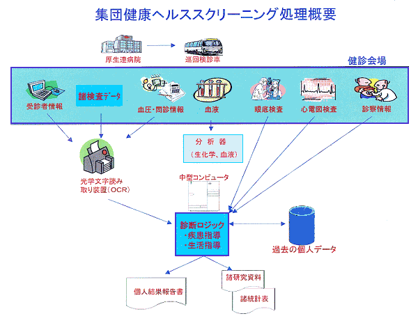 この中で特に、八千穂村の「予防は治療に勝る」の成果が注目され、農協婦人部からの ”せめて年一回人間ドック並みの健診を農協主体で実施してほしい” の声に応え、長野厚生連・健康管理センターが開設。そして、昭和48年10月より「集団健康スクリーニング」がスタートしました。平成20年度からは特定健診、特定保健指導に対応した健診も実施しています。