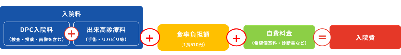 当院は、診療報酬点数表により入院診療費を算定しています。ただし、保険が適用されないもの(室料差額、分娩料、文書料等)については、当院の定めるところによりご請求いたします。保険証をご提示いただけない場合は、自費でご請求いたします。
