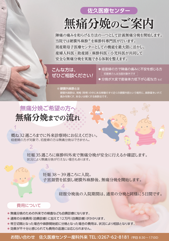 陣痛の痛みを和らげる方法の一つとして計画無痛分娩を2026年3月から開始します。